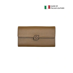 Flap Wallet Decorated with the leather logo, this elegant flap wallet is made of genuine leather. Its roomy, well-organized interior, 3 money slots, 8 card slots, 1 zipper pocket Dimension : 20 x 3 x 11 cm